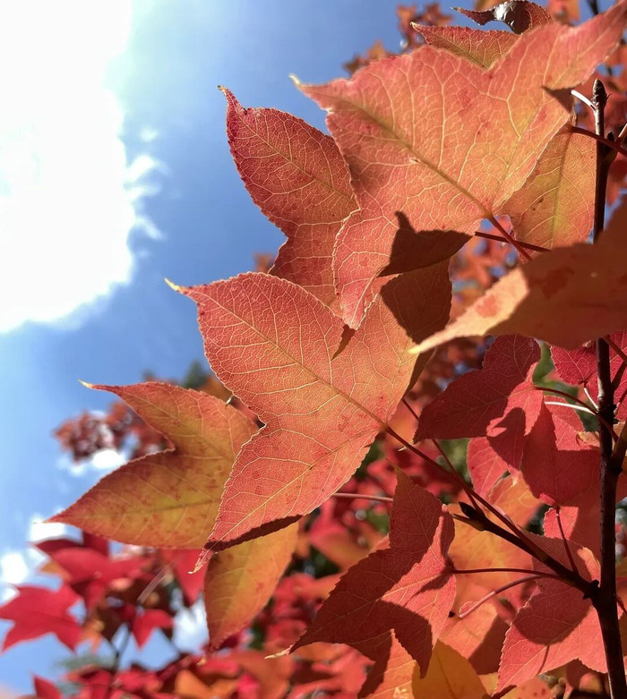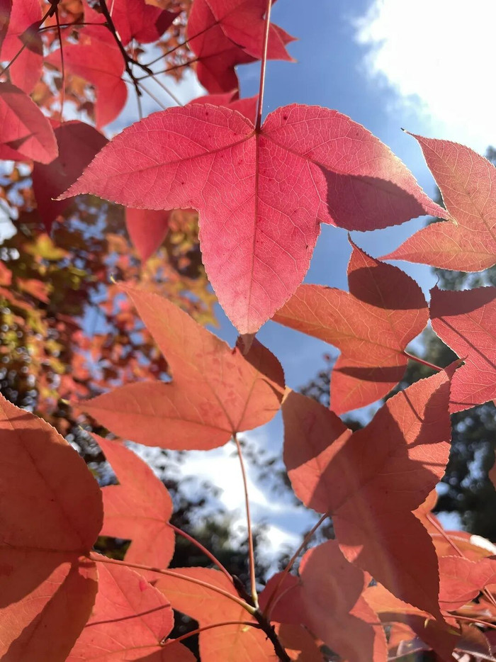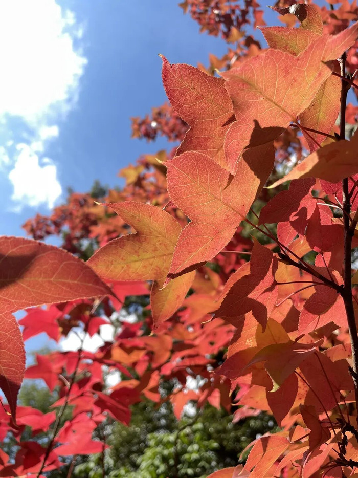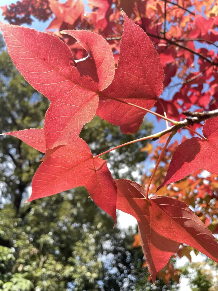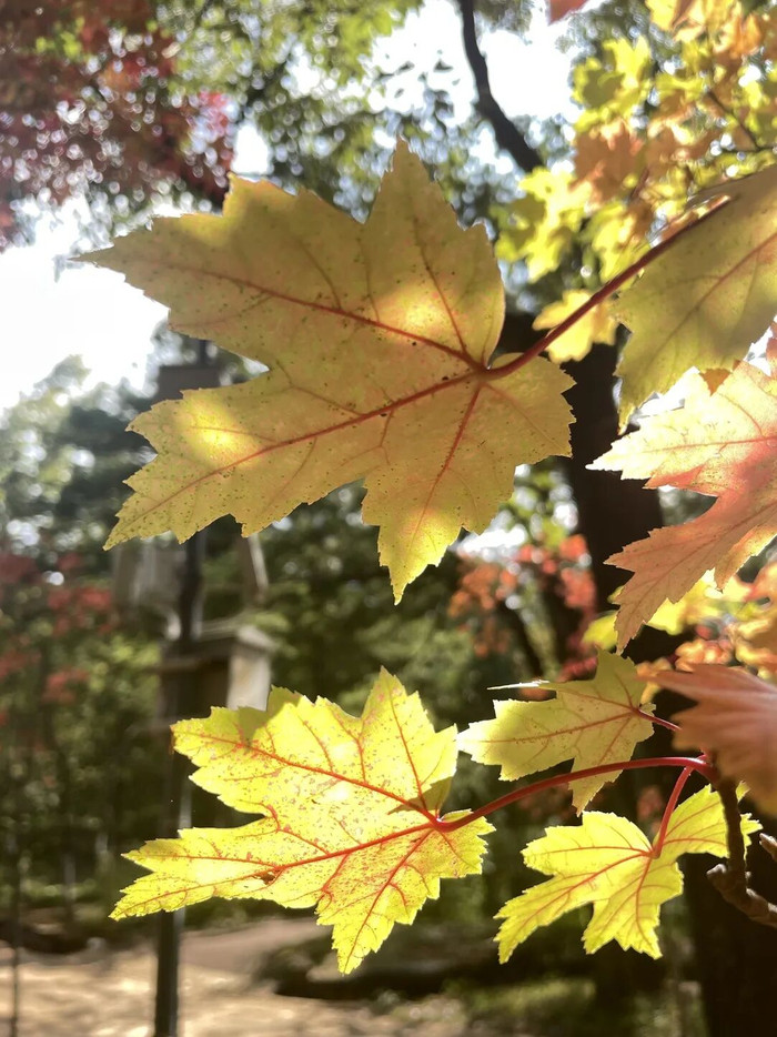 作为昆明市区规模最大的赏枫胜地,黑龙潭公园的枫叶岭早已成为市民秋季打卡的热门地标。园内种植了鸡爪槭、枫香、美国红枫、元宝枫等十余个品种,从10月中旬开始,树叶由绿转黄、再由黄变红,宛如打翻的调色盘。尤其是1997年为纪念香港回归栽种的红枫林,如今已长成参天大树,秋阳下如火如荼,与古色古香的亭台楼阁相映成趣。