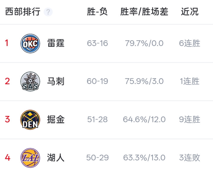马刺今年已经联盟第二,60 + 胜场,坐稳西部第二,而掘金排在西部第三。