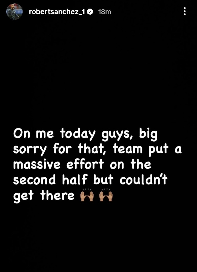 本轮焦点战,曼联2-1击败切尔西。赛后,开场4分钟染红的切尔西门将桑切斯发文道歉。