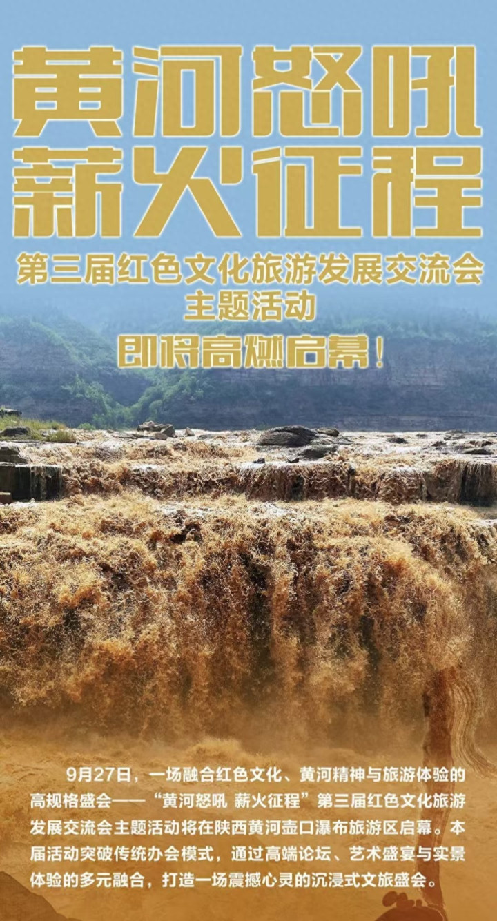 9月27日,一场融合红色文化、黄河精神与旅游体验的高规格盛会——“黄河怒吼 薪火征程”第三届红色文化旅游发展交流会主题活动将在陕西黄河壶口瀑布旅游区启幕。