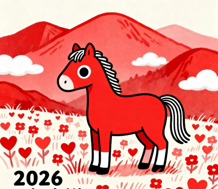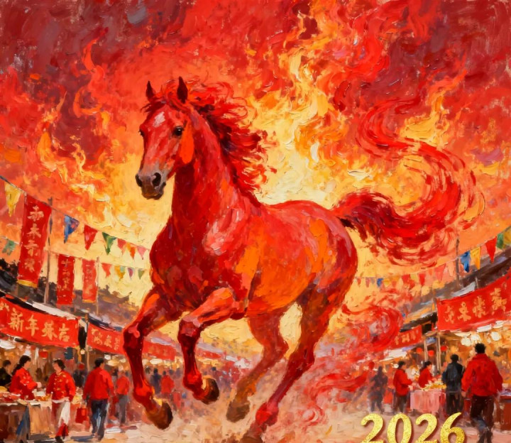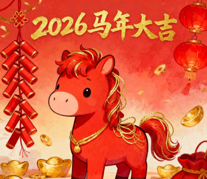 “红马年”的说法,源于干支五行体系。2026年天干为“丙”,地支为“午”,“丙”属火,在传统文化中对应红色;“午”则与生肖马相配,二者结合便有了“红马年”的称谓。
