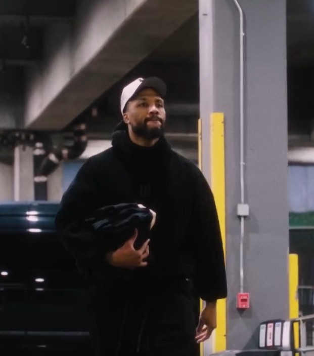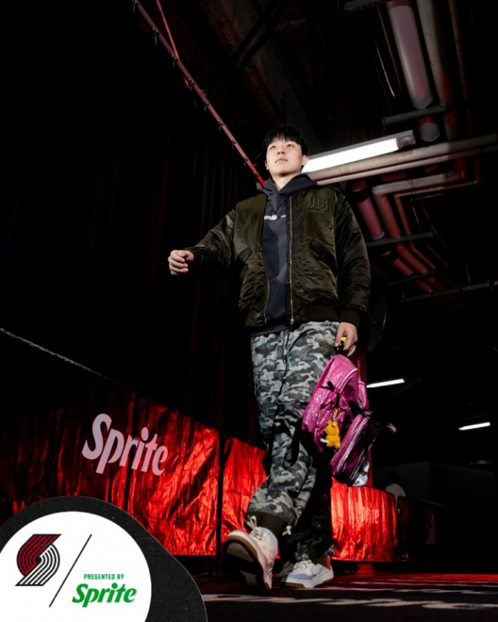 赛前,开拓者官方分享球员入场穿搭,杨瀚森上身夹克套卫衣,下面穿着一条迷彩裤,手里依然拿着自己的粉色小书包。